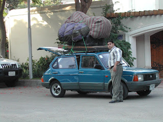 No dog on a car this week. Just looks like someone loaded up practically his whole house on top of a Fiat.